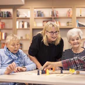 Unser Logo zeigt zwei einander zugewandte Menschen. Damit sagen wir: Unsere Bewohner*innen – und unsere Mitarbeiter*innen – stehen jederzeit im Fokus unserer herzlichen und ungeteilten Aufmerksamkeit.