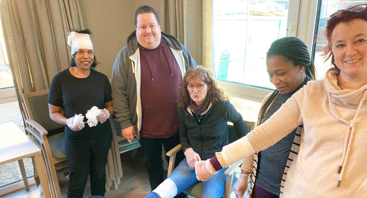 Natürlich hat es auch Spaß gemacht und ein bisschen Schabernack mit den Verbandsmaterialien wurde auch getrieben. Na dann kann ja jetzt nichts mehr passieren!