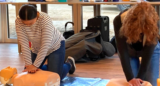 Das Deutsche Rote Kreuz aus Euskirchen war für die Schulung in der fast fertigen Einrichtung zu Gast – übrigens als erster Fortbildungsanbieter! Die Heimerzheimer durchliefen die Schulung und lernten alles rund um Erste Hilfe und Erstversorgung. Um Ersthelfer zu bleiben, ist spätestens alle zwei Jahre eine Fortbildung mit Erste-Hilfe-Training (9 Unterrichtseinheiten) nötig.