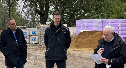 Insgesamt ein großer Komplex rund um die Pflege und Betreuung im Alter, der im dritten Quartal des kommenden Jahres bezugsfertig sein soll. „Damit wird eine Lücke in der Pflegelandschaft in Solingen geschlossen“, sagte Bezirksbürgermeister Hansjörg Schweikhart in seiner Grußrede. „Das ist ein wichtiger Schritt für die Versorgung alter Menschen.“