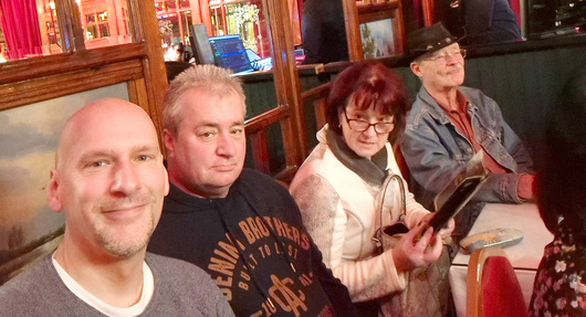 Die 13 Mitarbeiter:innen der Seniorenresidenz Heimerzheim haben es kurz vor dem Fest (ein bisschen) krachen lassen und die Show „Alle Jahre Lieder“ besucht. Die Vorankündigung versprach: „Wir feiern Weihnachten dieses Jahr Gans oder gar nicht. Und damit es so richtig festlich wird, haben wir uns ganz und gar großartige Gäste eingeladen: den Flori, die Marianne, den Michael – und natürlich Loco Flanel, die frisch gekrönte Royal Queen of Beuel!“