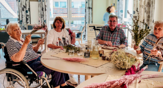 Die talentierten Bewohner*innen haben diesmal mit Trockenblumen wie Schleierkraut, Eukalyptus und buntem Pampasgras beeindruckende Gestecke und Kränze gezaubert.