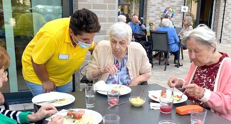 Im Anschluss der Olympiade fanden sich die Libento-Olympioniken auf der Terrasse ein. Mit Würstchen vom Grill und einer tollen Auswahl an Salaten haben sich die Bewohner*innen belohnt.
