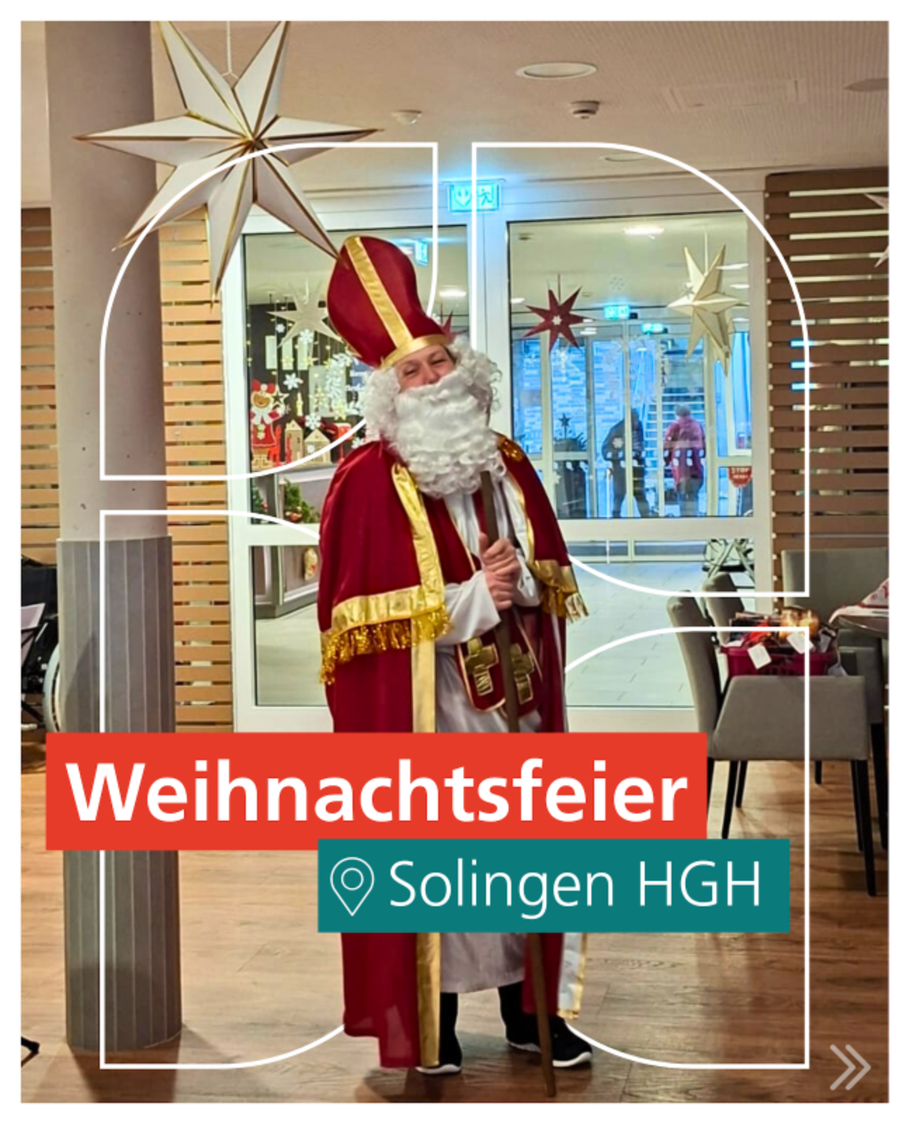 Bei der Weihnachtsfeier in unserer Libento Solingen Hausgemeinschaften Lochbachtal herrschte eine ganz besondere Atmosphäre: Sanfte Klaviermusik erfüllte den Raum, der Nikolaus kam zu Besuch und überreichte allen kleine Geschenke – liebevoll ausgewählt und mit einem Lächeln überreicht.