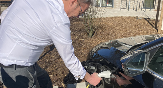 Die Einrichtungsleiter Detlef Berstermann (Wuppertal) und Marcel Zielinski (Heimerzheim) fahren elektrisch. Und damit sie ihre Fahrzeuge auch „betanken“ können, steht auf dem Parkplatz der Seniorenresidenz Wuppertal eine E-Ladesäule zur Verfügung. Voraussichtlich werden auch Mitarbeiter:innen sie nutzen können: Für die Abrechnung gelten dann die Vereinbarungen zwischen Residenz und Arbeitnehmer:in (fragt gerne nach!).