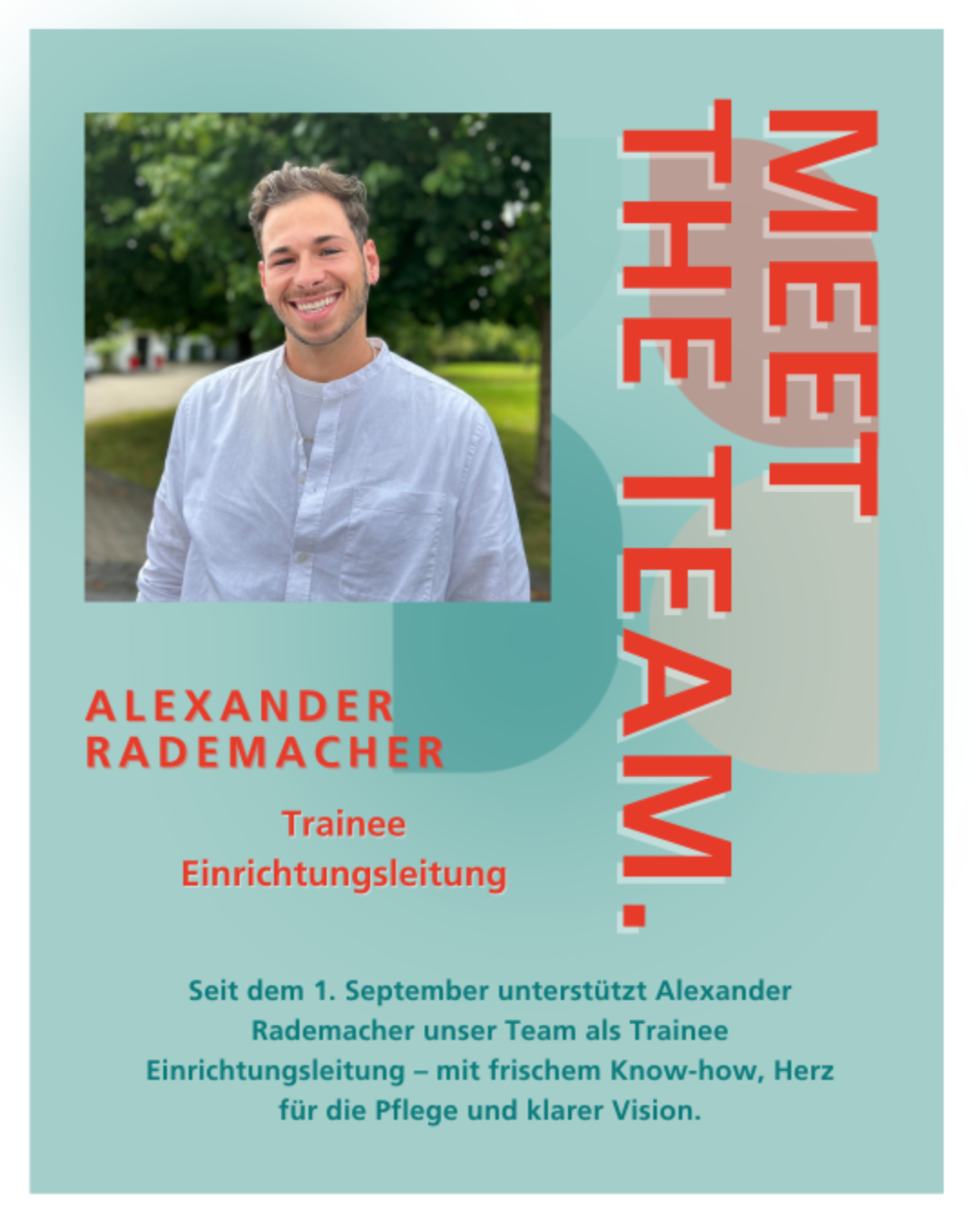 Seit dem 1. September 2025 unterstützt uns Alexander Rademacher als Trainee Einrichtungsleitung in der Libento Seniorenresidenz Wuppertal. Der gebürtige Wuppertaler bringt nicht nur frischen Wind und einen BWL-Abschluss mit, sondern auch echte Motivation: „Die Pflege meiner Großmütter zeigte mir, wie erfüllend sinnstiftende Arbeit sein kann.“